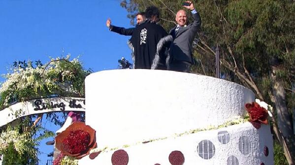 Danny Leclair i Aubrey Loots, para gejów z Los Angeles są razem 12 lat, pobrali się na szczycie platformie podczas Roses Parade sponsorowane przez Fundację AIDS Healthcare, małżeństwa homoseksualne są legalne w Kalifornii jak może odegrać małżeństwo pomóc zmniejszyć nowych zakażeń HIV wśród homoseksualny osób.