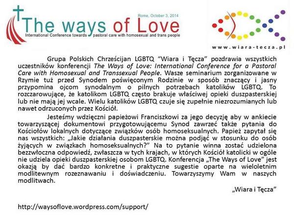 Wieści religijne: judaizm i homoseksualizm, lesbijki i geje piszą do papieża, Konwencja The ways of love ...