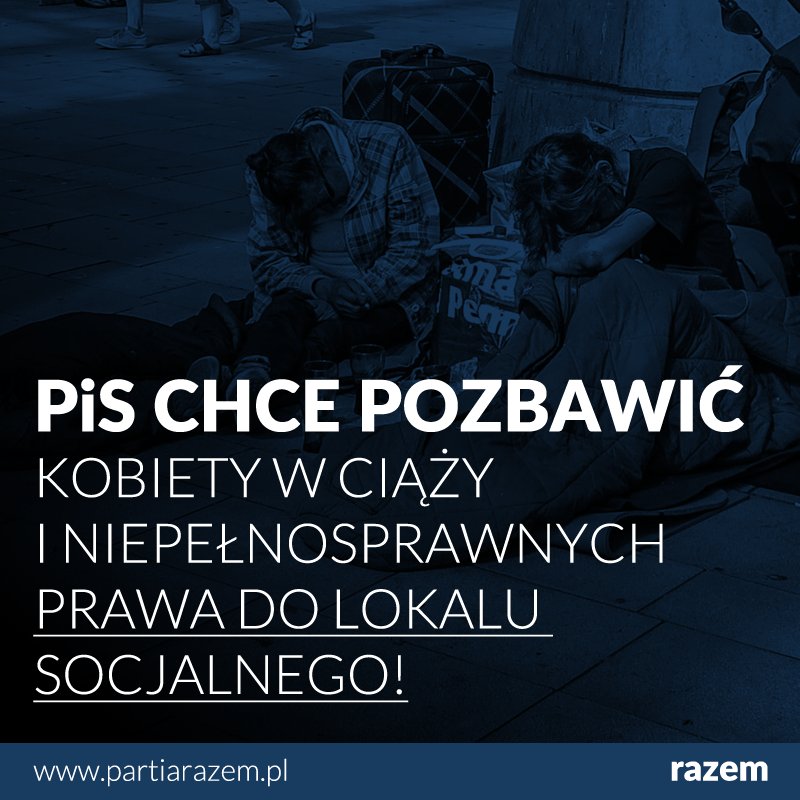Premier Szydło dokonała szumnej inauguracji Narodowego Programu Mieszkaniowego. Niestety, wbrew zapowiedziom sprzed kilku miesięcy, na budownictwo społeczne przeznaczono w nim śmiesznie niskie środki. Przy okazji forsowane są zmiany, które w praktyce likwidują ochronę najsłabszych przed eksmisją. Kobiety w ciąży, bezrobotni, dzieci czy niepełnosprawni stracą prawo do lokalu socjalnego.