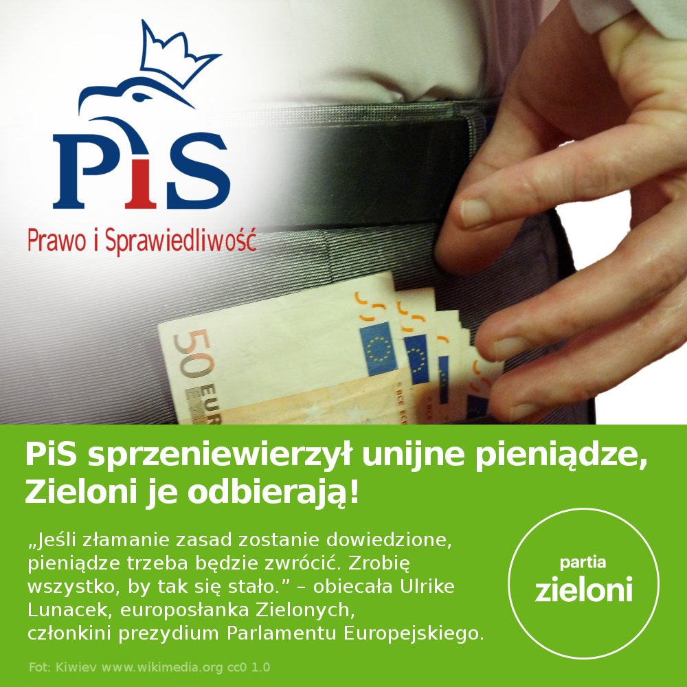 PiS mógł sprzeniewierzyć unijne pieniądze organizując za nie partyjne konwencje. Ujawniona lesbijka Ulrike Lunacek, zielona europosłanka Greens/EFA z Austrii i członkini prezydium Parlamentu Europejskiego, obiecuje: "Jeśli złamanie zasad zostanie dowiedzione, pieniądze trzeba będzie zwrócić. Zrobię wszystko, by tak się stało" - Partia Zielony.
