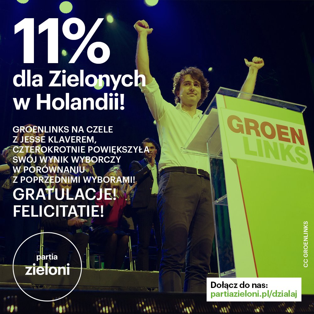 Efekt Jesse Klavera! W wyborach parlamentarnych w Holandii lewicowa zielona partia GroenLinks czterokrotnie poprawiła swój wynik wyborczy i została najsilniejszą postępową siłą w holenderskim parlamencie. Gratulacje! Felicitatie.