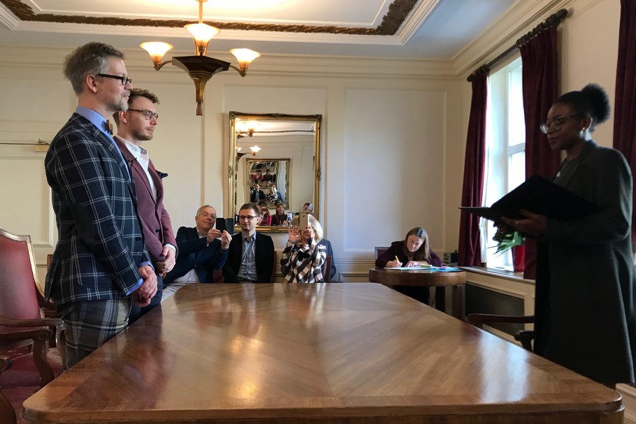 Francisco Raffaele, 40 letnich reżyser i Luca, 30 letnich tancerz, para gejów z Włoch powiedzieli sobie tak, osobiście Virginia Raggi burmistrz Rzymu uczestniczyła w ceremonii.