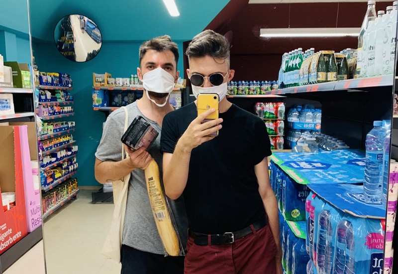 Queerowy performer Gąsiu na szczęście nie ma toksycznego stosunku do bycia mężczyzną – przesłał nam tę fotkę, dopisując: „Spędziliśmy z Pawłem wieczór po męsku to znaczy ja uczyłem Pawła robić makijaż – na własnej twarzy.”