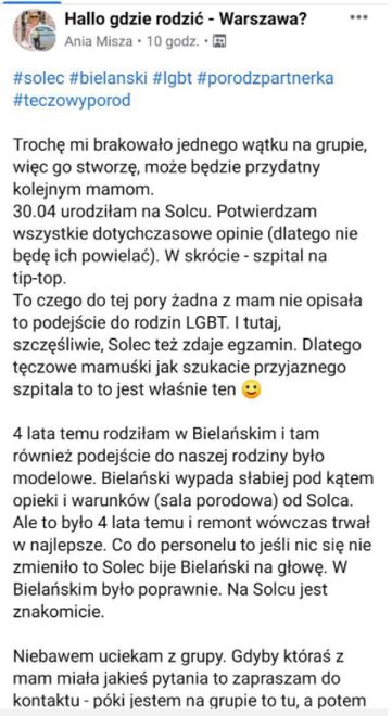 - 30.04 urodziłam na Solcu (…). To czego do tej pory żadna mama tu nie opisała to podejście do rodzin LGBT. I tutaj, szczęśliwie, Solec też zdaje egzamin. Dlatego tęczowe mamuśki, jak szukacie przyjaznego szpitala, to to jest właśnie ten (...) - wp.pl.