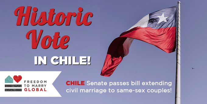 Chile bliżej równości małżeństw. Senat przegłosował, aby uchwalić równość małżeństw w swoim kraju, teraz przenosi się debatę do Izby Deputowanych. Jeśli zostanie przyjęty, prezydent Piñera mówi podpiszę.
