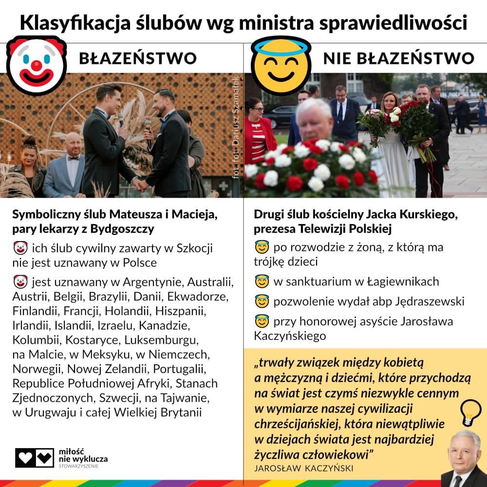 Podsumujmy zatem: zdaniem pana wiceministra na karę zasługują nie ci, którzy grożą osobom LGBT+ i je atakują, ale dwie kochające się osoby. Tylko dlatego, że są osobami tej samej płci. Inaczej sprawa wygląda jeśli chodzi o związki kobiety i mężczyzny - te zasługują na szczególną ochronę jako coś "niezwykle cennego" dla cywilizacji chrześcijańskiej, "najbardziej życzliwej człowiekowi" - Miłość Nie Wyklucza.