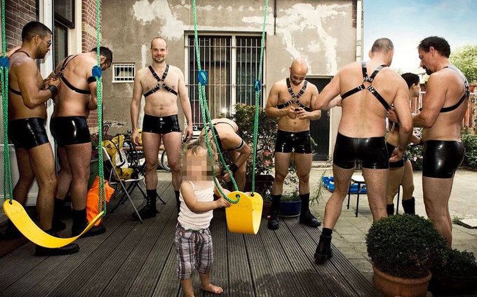 Breda uchwycił niezwykły i oryginalny obraz. Na zdjęciu bawiąca się, uśmiechnięta dziewczynka, a wokół niej grupa mężczyzn w „fetyszowych ubraniach”. Z tego, co dowiadujemy się, 8 obecnych mężczyzn zostało przyjętych przez właściciela domu i matkę dziecka, która udostępniła im ogród do przebierania się.