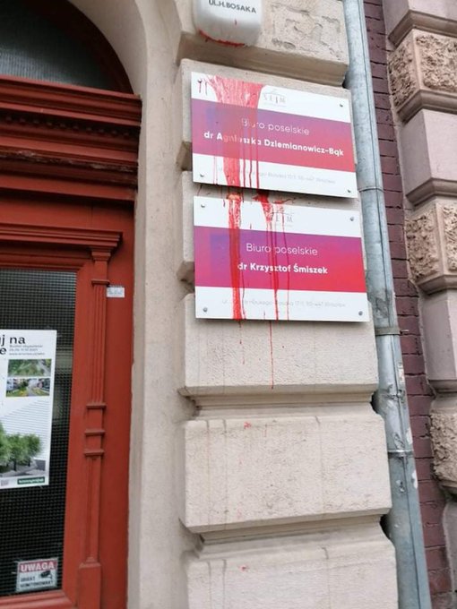 Atak na biuro poselskie na posła Krzysztofa Śmiszka i posłankę Agnieszki Dziemianowicz-Bąk.