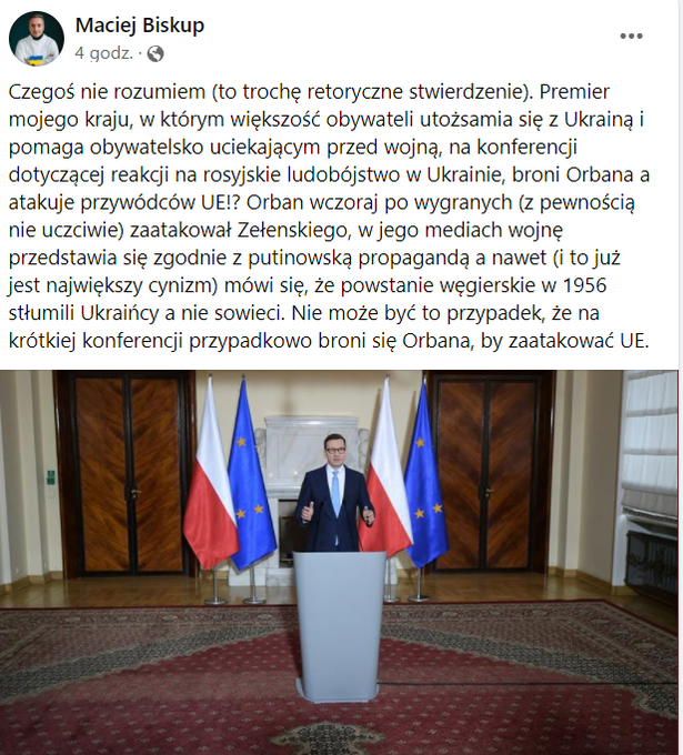 Wreszcie mamy też europosła Waszczykowskiego - być może pamiętacie go z porównania homofobicznego napadu z nożem na parę mężczyzn w centrum Warszawy do klubowych porachunków Widzewa z Polesiem - kibicującego Fideszowi “bo nie było komu innemu kibicować” i wierzącemu, że zwycięstwo tej partii pomoże Polsce w Unii Europejskiej. W jaki sposób? Tego nie wiemy, ale możemy się tylko zastanawiać jak długo Unia będzie znosić politykę nienawiści, uprzedzeń, i przemocy wobec osób LGBT+. Wygląda na to, że naszemu rządowi wciąż bliżej do antywartości Putina, niż wartości Zełenskiego - Miłość Nie Wyklucza.