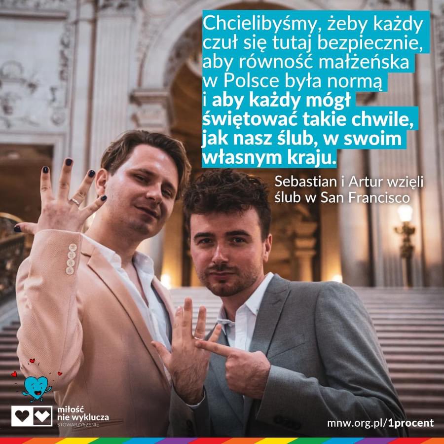 Chyba w pewnym momencie naszego życia przestaliśmy już wierzyć, że taki dzień może się wydarzyć w naszym życiu, a tymczasem staliśmy załapani za ręce i próbowaliśmy cieszyć się każdą sekundą tego wydarzenia (...) Chcielibyśmy jednak, żeby było inaczej i żeby każdy czuł się tutaj bezpiecznie, aby równość małżeńska w Polsce była normą i aby każdy mógł świętować takie chwile, jak nasza, w swoim własnym kraju." - Miłość Nie Wyklucza.