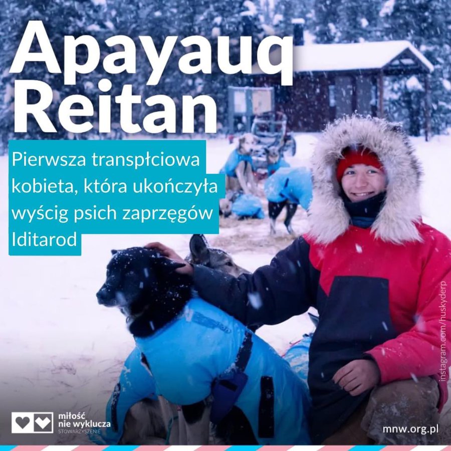 Apayauq Reitan, czyli pierwszej transpłciowej kobiecie, która ukończyła Iditarod - długodystansowy wyścig psich zaprzęgów odbywający się co roku na Alasce.
