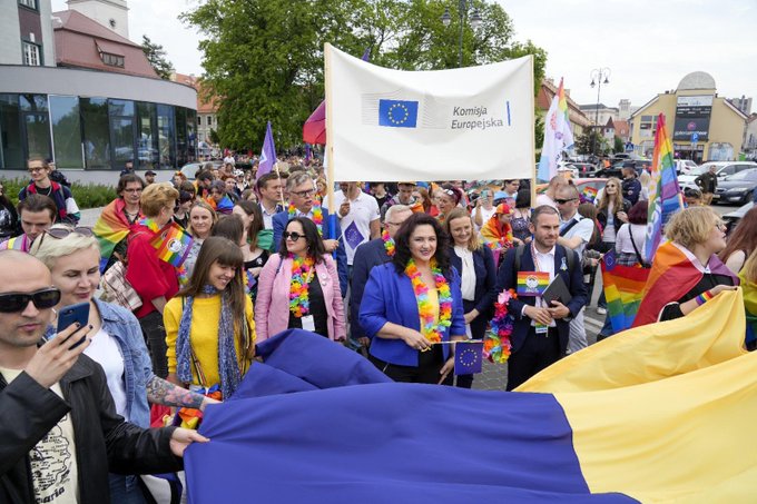 Chcemy, aby Wasze prawa były uznane. Jesteśmy dumni z tego, że możemy dziś uczcić różnorodność. Jesteśmy także dumni z tego, że wyraźnie i głośno można mówić o tym, że w społeczeństwie nie ma miejsca na dyskryminację i nienawiść. Unia Europejska wypracowała pierwszą strategię na rzecz równości osób LGBTIQ. Teraz działamy na rzecz tego, by ta strategia znalazła odzwierciedlenie w prawie każdego państwa członkowskiego Unii Europejskiej - mówiła unijna komisarz Helena Dalli.