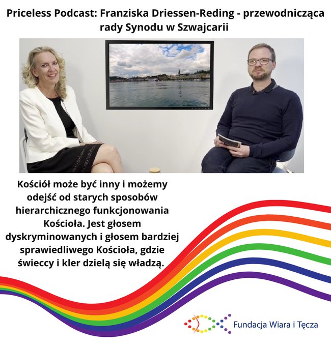 Dziś polecamy Podcast Priceless - Patrząc na wydarzenia w Kościele katolickim trudno nie poddać się zniechęceniu, wydawać by się mogło, że nigdy nic w nim się nie zmieni. Po kilku krokach do przodu następuje kilka kroków wstecz. Dlatego też polecamy rozmowę z Franziską Driessen-Reding, pierwszą kobietą przewodniczącą rady Synodu Kościoła rzymskokatolickiego w Szwajcarii.