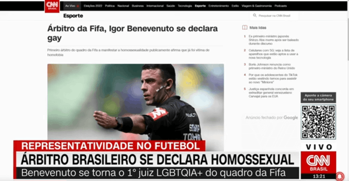 Jeden z najbardziej znanych arbitrów piłkarskich w Brazylii Igor Benevenuto publicznie poinformował o swojej nieheteronormatywnej orientacji. To pierwszy sędzia zrzeszony w FIFA, który odważył się na podobne wyznanie.
