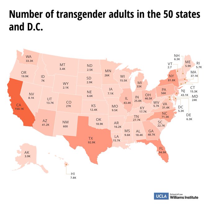 Według badania Williams Instytut około 1,3 miliona dorosłych w USA identyfikuje się jako osoby transpłciowe.