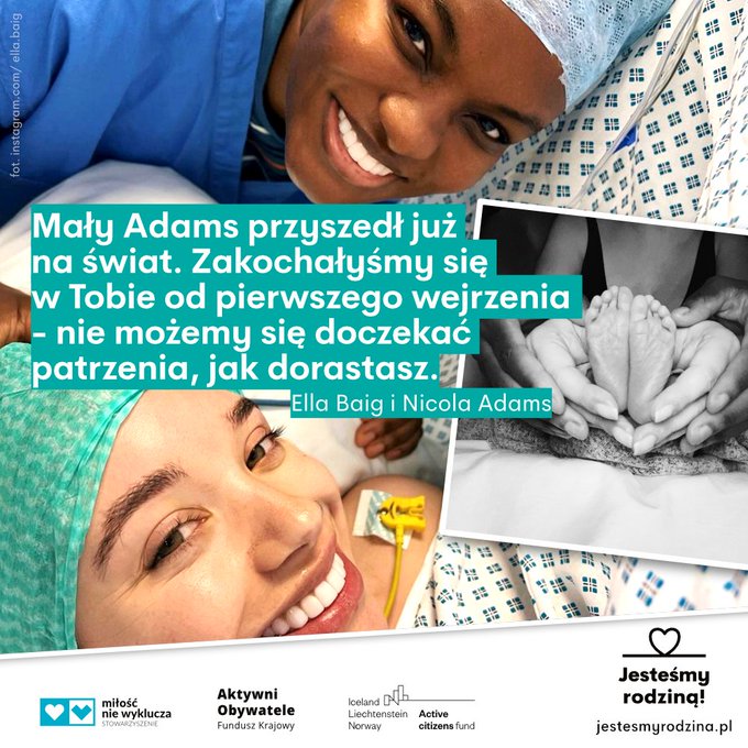 Pięściarka Nicola Adams wraz z partnerką Ellą Baig doczekały się narodzin synka! "Mały Adams przyszedł już na świat. Zakochałyśmy się w Tobie od pierwszego wejrzenia. Przeszłyśmy długą drogę, byś się pojawił, i nie możemy się doczekać patrzenia, jak dorastasz" - tak Nicola Adams ogłosiła na swoim Twitterze pojawienie się ich pierworodnego - Miłość Nie Wyklucza.