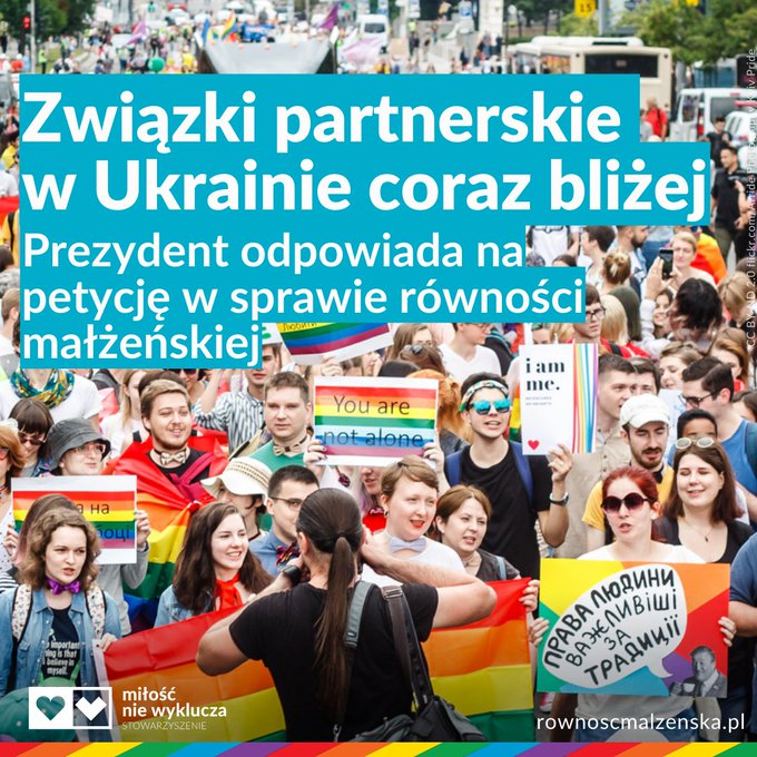 Coś niesamowitego😍 W odpowiedzi na petycję podpisaną przez prawie 30 000 osób prezydent Zełenski obiecał, że gdy tylko zakończy się stan wojenny, złoży ustawę o związkach partnerskich 💪🏻🌈👍🏻 Ogromny sukces ukraińskiej społeczności LGBT+ okupiony wielką pracą. Trzymam kciuki!🇺🇦✌🏻
