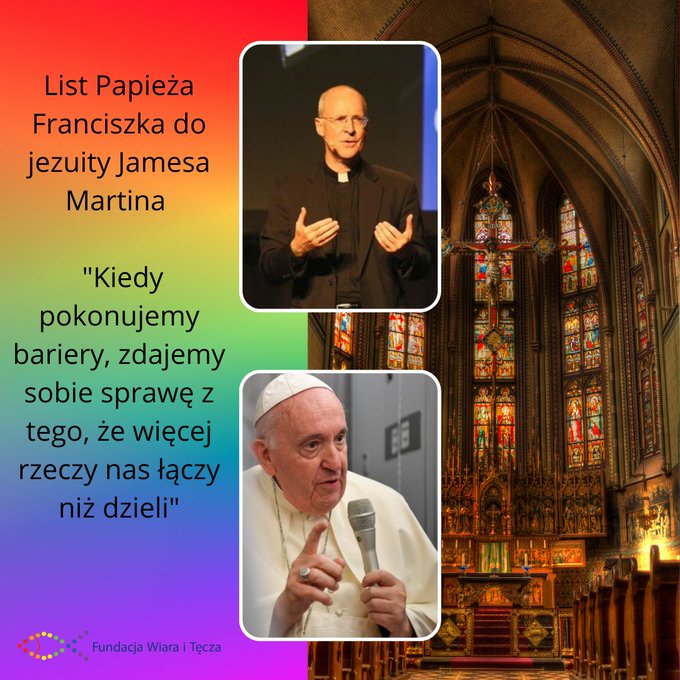 „Więcej rzeczy nas łączy niż dzieli”, napisał papież. „Zachęcam do dalszej pracy na rzecz kultury spotkania, która skraca dystans i wzbogaca nas naszymi różnicami, tak jak Jezus, który był blisko wszystkich. […] Kiedy pokonujemy bariery, zdajemy sobie sprawę z tego, że więcej rzeczy nas łączy niż dzieli” - Fundacja Wiara i Tęcza.