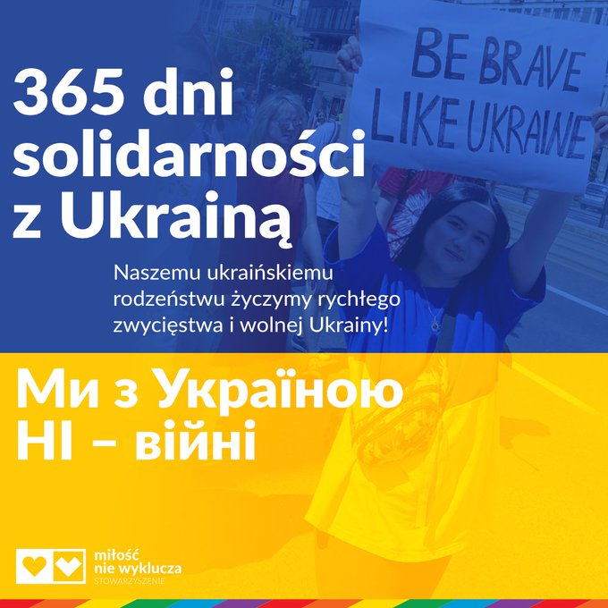 Przez ten rok pozostawałyśmy solidarni i solidarne z Ukrainą - my, Miłość, ale też my, nasz kraj. 365 dni wojny przyniosło ogrom działań pomocowych i wyrazów wsparcia, ale też ogrom aktów przemocy ze strony Rosji, które wciąż mają miejsce w wielu miejscach w Ukrainie. I chociaż może w mediach nie słychać już o niej tak często — to ta wojna wciąż trwa. Ukraina i jej ludzie wciąż potrzebują naszego wsparcia — rzeczowego, finansowego, zapewnienia schronienia, słów solidarności i pamięci.