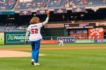 We wtorkowy wieczór była Spikerka Emerita Nancy Pelosi rzuciła symboliczną pierwszą piłkę podczas meczu Washington Nationals z okazji "Night OUT" dla społeczności LGBTQ+.