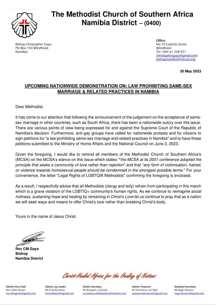 Kościół Metodystyczny wzywa wiernych do powstrzymania się od marszu przeciwko osobom LGBTQ. Metodystyczny Kościół Południowej Afryki - Dystrykt Namibii - określa planowaną demonstrację jako "poważne naruszenie praw człowieka wobec społeczności LGBTIQ+" https://t.co/h3VGDmRS1apic.twitter.com/CFazUsXqQ3