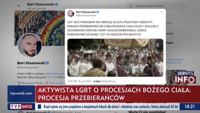 Pracownik TVP, która szczuje na osoby LGBT, pojawił się na Marszu Równości w Zielonej Górze, gdzie starł się z senatorem Wadimem Tyszkiewiczem. Bartosz Schaefer w zmanipulowany sposób przedstawił tę sytuację w swoich mediach społecznościowych - onet.pl