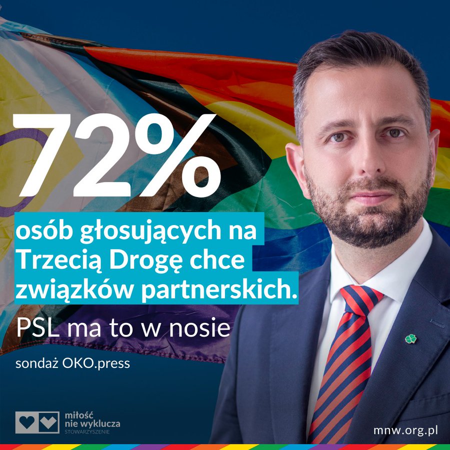 Nie do końca: jest jeszcze Trzecia Droga. Zarówno w PSL-u, jak i w partii Szymon Hołowni nie brakuje osób, które nie mają zielonego pojęcia ani o związkach, ani o małżeństwach i niekoniecznie chcą się czegoś dowiedzieć. Ignorowanie głosów organizacji społecznych takich jak nasza, które od lat oferują politykom ekspercką pomoc, przychodzi im niestety z łatwością. Czy równie łatwo powiedzą, żemają w nosie włanych wyborców i wyborczynie? Dowiemy się tego już wkrótce - Miłość Nie Wyklucza.