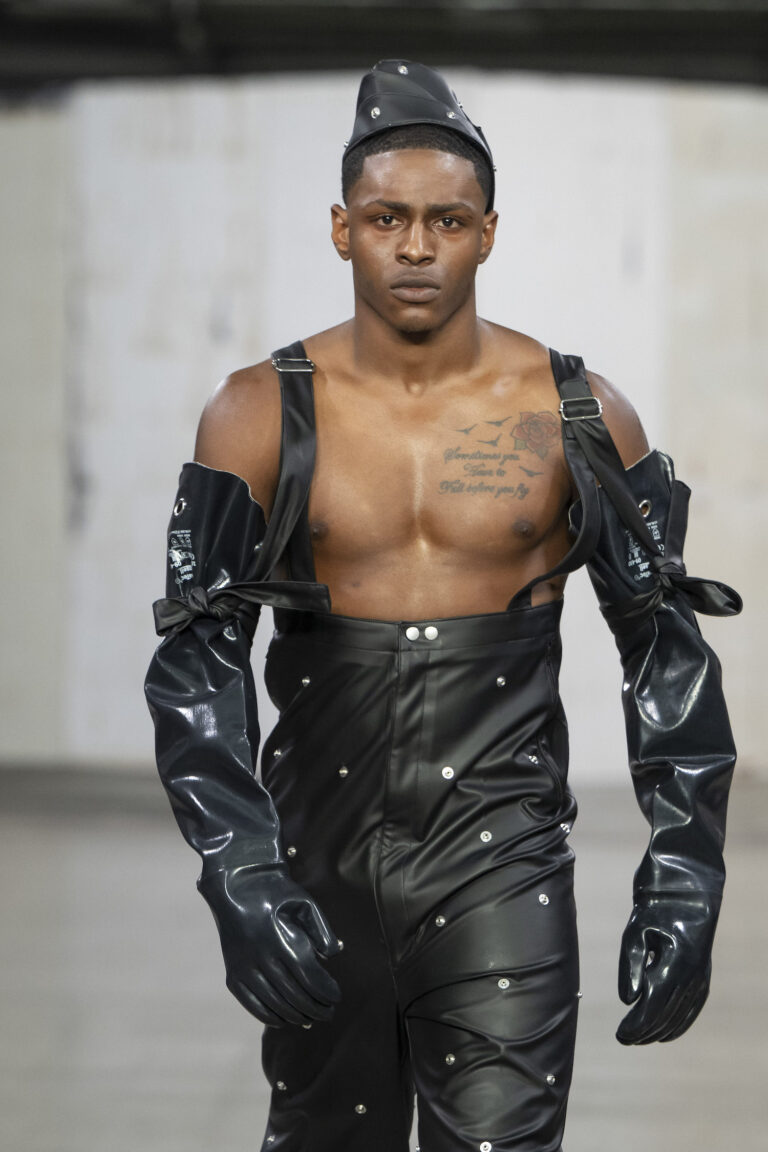 Prekursorami tej nowej, skórzanej rewolucji był Ludovic de Saint Sernin, którego kolekcja na jesień-zimę 2024 została zainspirowana twórczością Roberta Mapplethorpe'a – fotografa, który w późnych latach 20. XX wieku wywoływał kontrowersje i cenzurę swoją dokumentacją gejowskiej sceny BDSM, obejmującej wszystko od cruising po fisting i watersports. Kolekcja Ludovica ewoluowała od delikatnych odniesień do kwiatowej fotografii Mapplethorpe'a, po bardziej odważne, zmysłowe stylizacje. Sznurowane majtki, uprzęże i gorsety były zestawiane z butami gotowymi na mokry pokój, odważnymi spodniami z wycięciem na pośladki i kondomowymi czapkami, wszystko to w tym samym połysku, który widzieliśmy na wybiegach w tym sezonie.