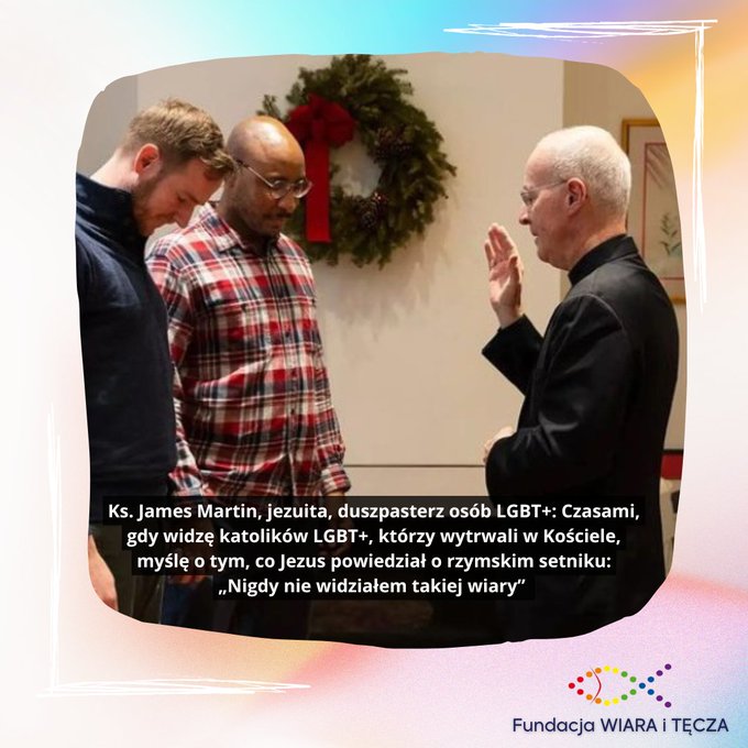 Artykuł w Tygodniku Powszechnym - Ks. James Martin SJ, amerykański jezuita i autor bestsellerów, znany jest z pracy duszpasterskiej z osobami LGBT+. W 2017 roku opublikował książkę Building a Bridge, w której argumentuje, że Kościół powinien budować mosty między wiernymi LGBT+ a resztą wspólnoty, opierając się na szacunku i dialogu. Martin uważa, że gdyby Jezus był dzisiaj na Ziemi, stałby po stronie osób LGBT+, które są marginalizowane.
