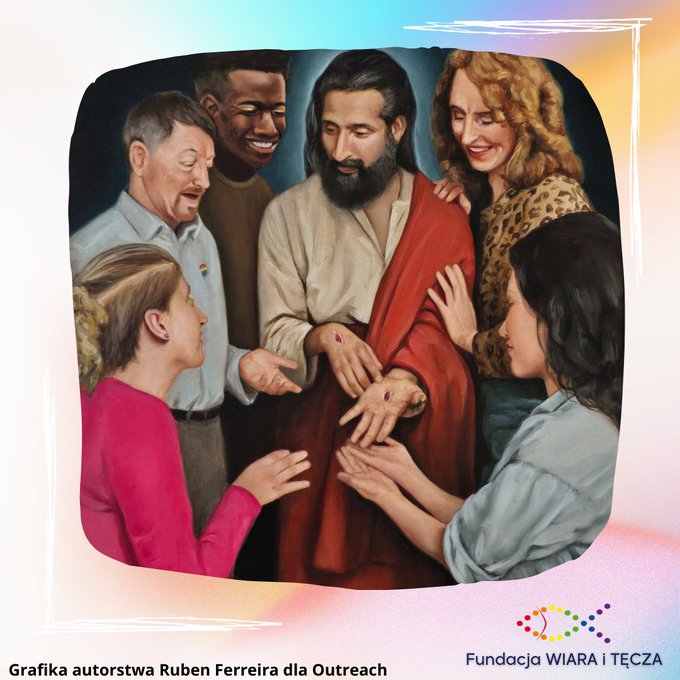 Na początku marca powstał niezwykle poruszający obraz „Zmartwychwstały Chrystus wychodzi do osób LGBTQ” (tytuł org. „The Risen Christ’s Outreach to LGBTQ People”) autorstwa Rubena Ferreiry, zamówiony przez organizację Outreach.https://t.co/Xk2buslFIW pic.twitter.com/3TG1UxkxmI