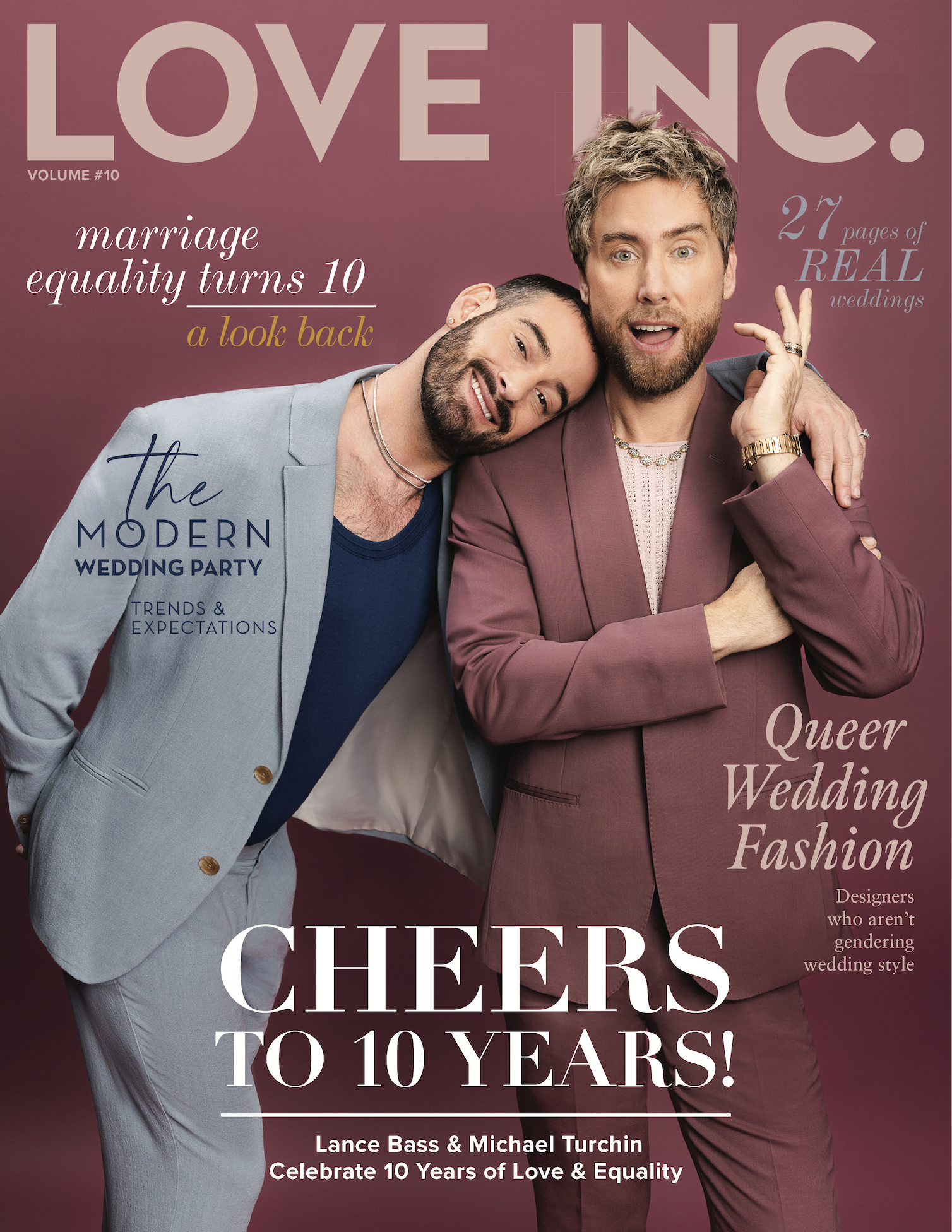 Dekadę po przełomowym orzeczeniu Sądu Najwyższego USA legalizującym małżeństwa jednopłciowe w całym kraju, magazyn Love Inc. – czołowe wydawnictwo promujące równość w branży ślubnej – uczcił ten moment wyjątkową okładką. Bohaterami jubileuszowego numeru zostali jedni z najbardziej lubianych przedstawicieli społeczności LGBTQ+ w Ameryce: Lance Bass i Michael Turchin.