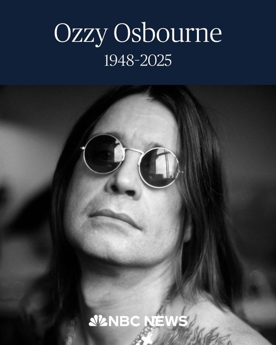Ozzy Osbourne, zawodzący wokalista zespołu Black Sabbath, który później rozpoczął karierę solową i wyruszył „Szalonym pociągiem” z ponurego dzieciństwa w robotniczym Birmingham w Anglii do statusu gwiazdy heavy metalu, zmarł. Miał 76 lat.https://t.co/VZHDTlp1Xc